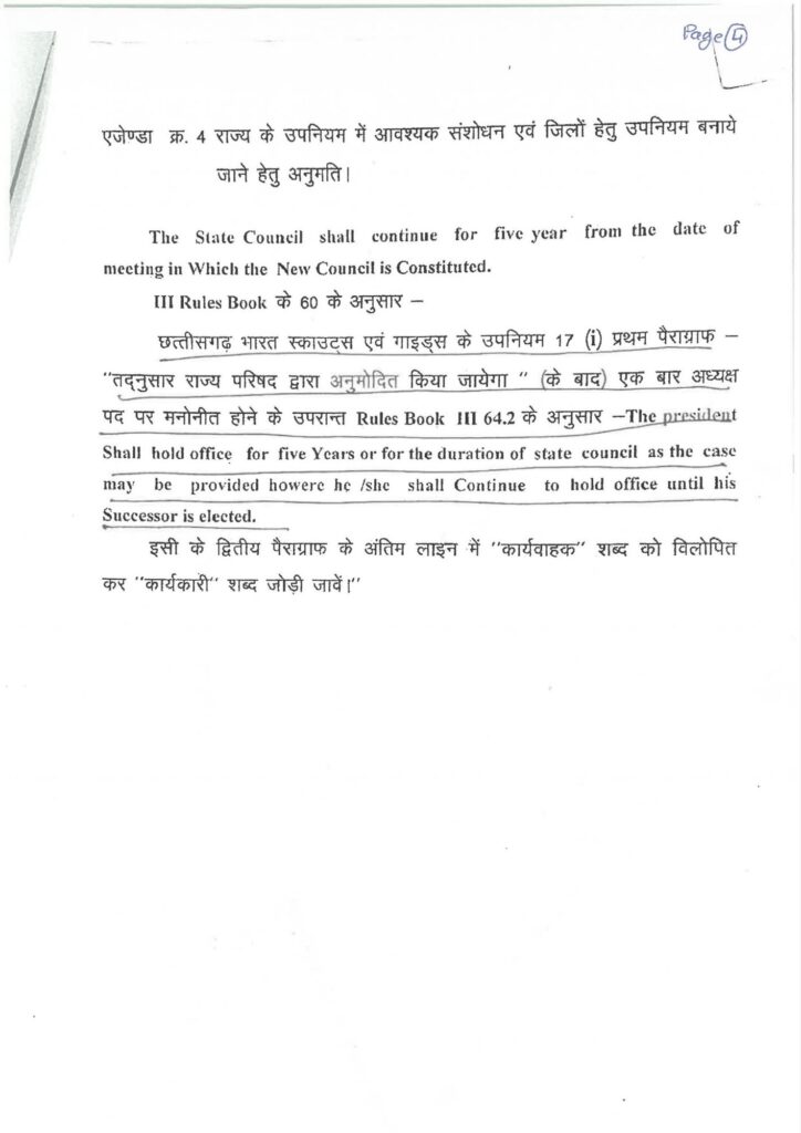 रायपुर:भारत स्काउट्स एंड गाइड्स छत्तीसगढ़ ने 8.10.2024 को परिषद की बैठक में सभी सदस्यों की आम सहमति से राज्य के उप नियम में आवश्यक संशोधन करने के लिए प्रस्ताव पारित किया था।