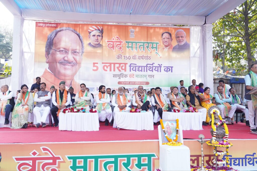 15 जनवरी, रायपुर:गुरुवार को सेना दिवस के अवसर पर रायपुर लोकसभा क्षेत्र ने देशभक्ति का अद्भुत, अनुकरणीय और ऐतिहासिक उदाहरण प्रस्तुत किया। सांसद बृजमोहन के प्रेरक मार्गदर्शन एवं प्रभावी नेतृत्व में करीब 5 लाख विद्यार्थियों ने एक साथ सामूहिक पूर्ण वंदे मातरम् का गायन कर देश में नया कीर्तिमान स्थापित किया।